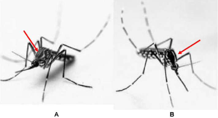 Aedes aegypti (Fig. 7a) y Aedes albopictus (Fig. 7b), son los principales transmisores de Dengue en BCS y una seria amenaza para la salud humana y animal (Rey & Lounibos, 2015): Ambas especies, se distinguen por las bandas blancas de sus patas traseras y las marcas blancas en forma de lira de su cuerpo (Soares ET AL., 2022). Son de origen tropical, y aunque su capacidad de dispersión es poca, su estrecha convivencia con nosotros ha favorecido su gran expansión en el Continente Americano (Rey & Lounibos, 2015).